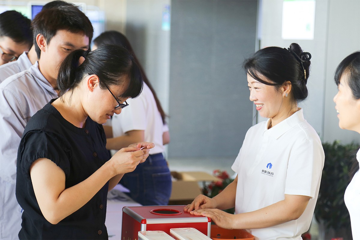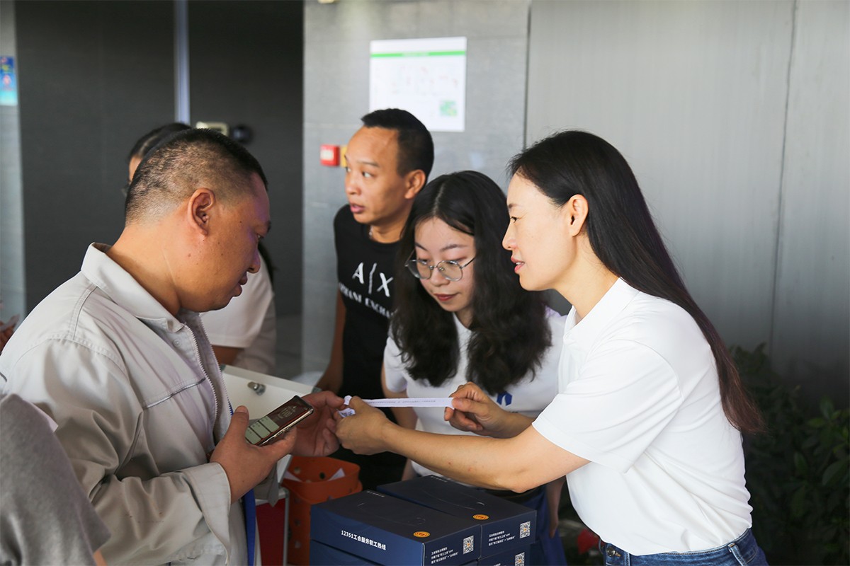 普法宣传有奖竞答活动在公司一楼大厅拉开帷幕。竞答题目包括《宪法》《民法典》《反垄断法》《公司法》《药品管理法》《安全生产法》《突发事件应对法》《职业病防治法》《劳动合同法》《妇女权益保障法》《浙江省优化营商环境条例》等多部法律法规,内容贴近职工工作与生活实际。职工现场签到抽题,答对题目即可获得抽奖机会。奖品丰富实用,包括便当盒、收纳篮、喷油壶、雪花膏、多功能刀板架、微波奶杯、饺子盒、艾草锤、洗浴篮等,极大地激发了大家的参与热情。